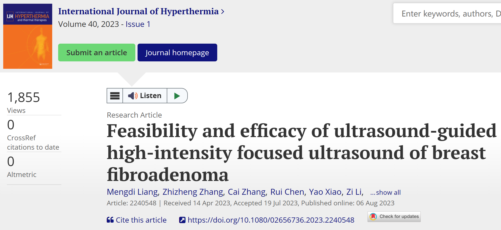 本文的结论是超声引导下 HIFU 手术是一种有效、安全的乳腺纤维腺瘤非侵入性替代技术。