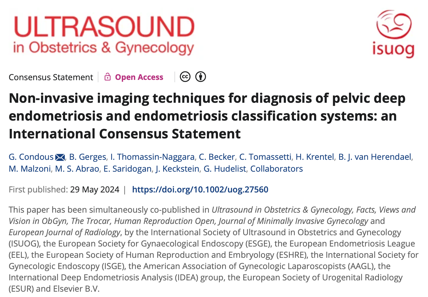 Today we are sharing an international consensus statement on non-invasive imaging techniques for diagnosis of pelvic deep endometriosis and endometriosis classification systems. Numerous internationally renowned medical societies, such as ISUOG, IDEA, EEL, AAGL and ESGE, participated in this study and formed an international multidisciplinary team consisting of gynecological surgeons, sonographers, and radiologists.