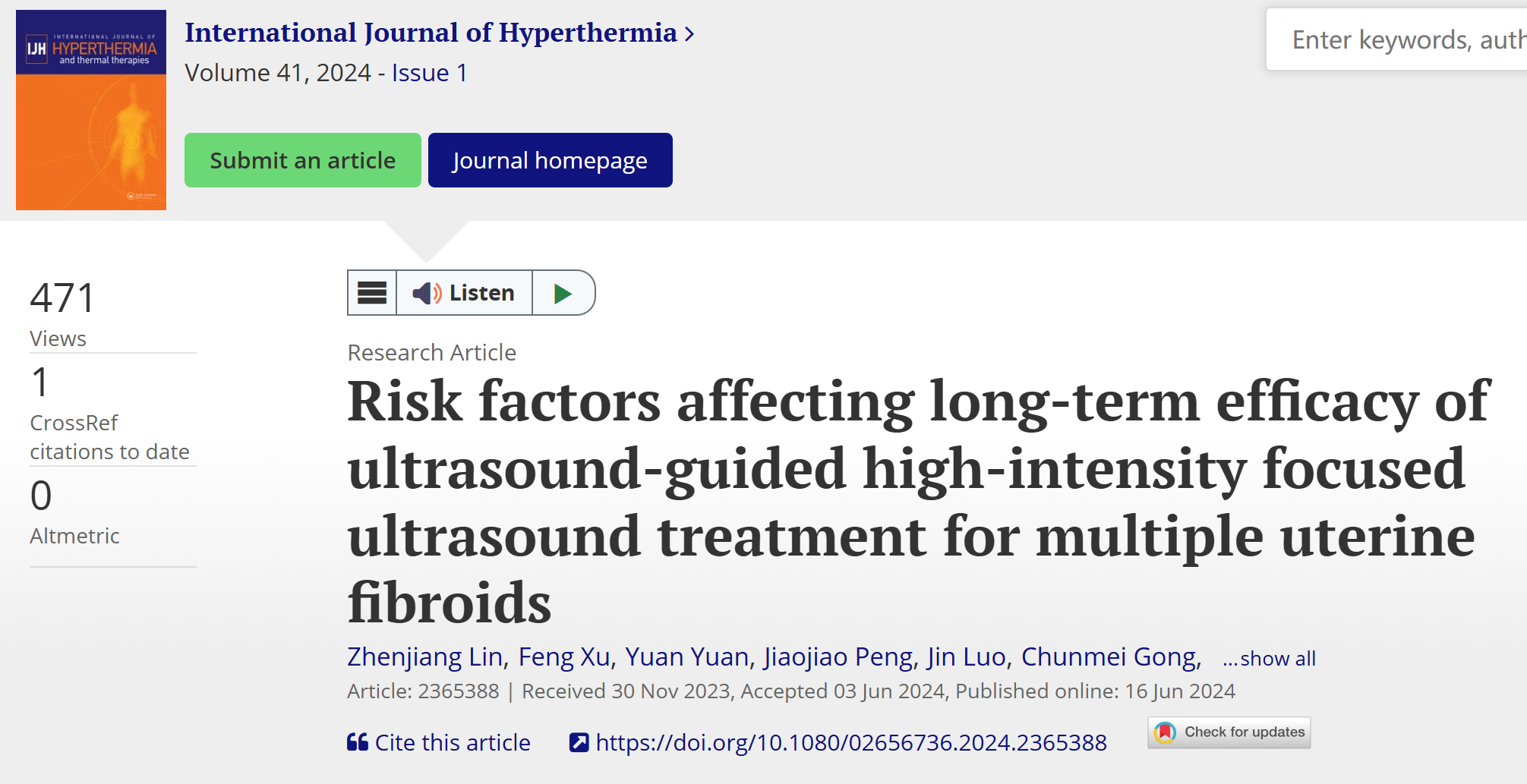 The article investigates the long-term efficacy of ultrasound-guided high-intensity focused ultrasound (USgHIFU) for multiple uterine fibroids and the factors associated with recurrence.